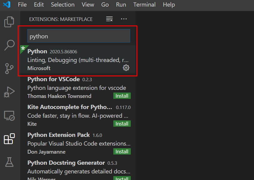 phthon을 검색해서 install을 클릭해 줍니다.