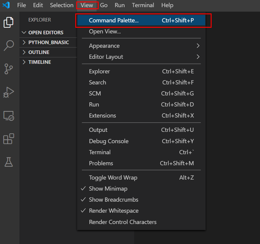 view > Command Palette.. 클릭