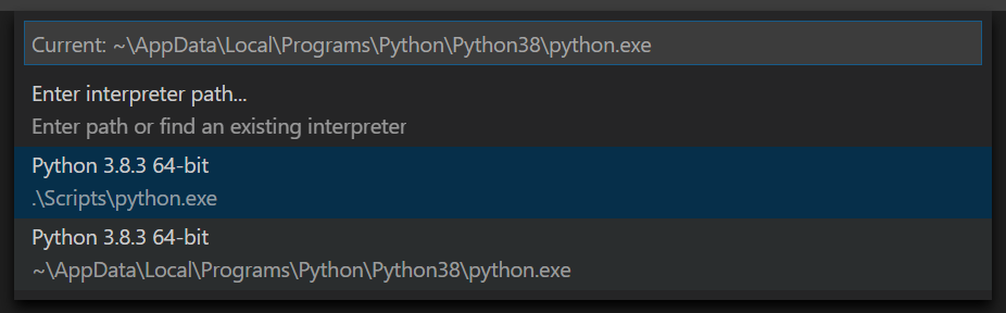 python:Select Interpreter를 검색해서 클릭