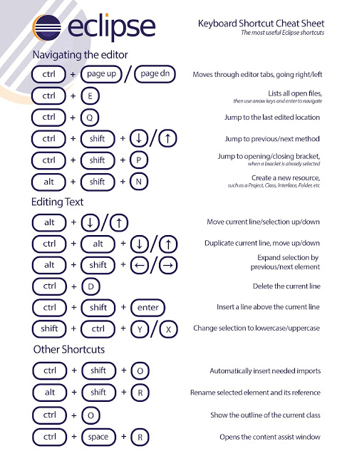 26) Ctrl+Shift+L to view the listing for all Eclipse keyboard shortcuts.